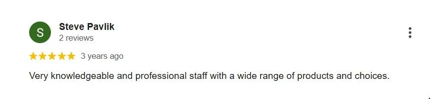"Very knowledgeable and professional staff with a wide range of products and choices. they offer" - Steve Pavlik